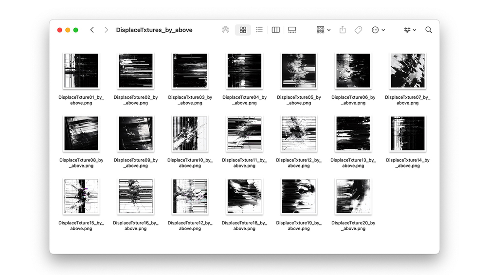 You'll get 20 png textures to use with Displacement Map effect